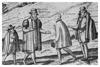 Het Johanniter Hospital in het dal van de Wilde in 1590 (rood gemarkeerd). Hier bevond zich ook de ambtswoning van Arnold Langemann, alwaar zoon Johann Langemann (Macrander) in 1600 werd geboren. Op de achtergrond aan de linkerzijde de stad Altwildungen met het slot en aan de rechterzijde de stad Niederwildungen. Tegenwoordig vormen zij samen de stad Bad Wildungen.