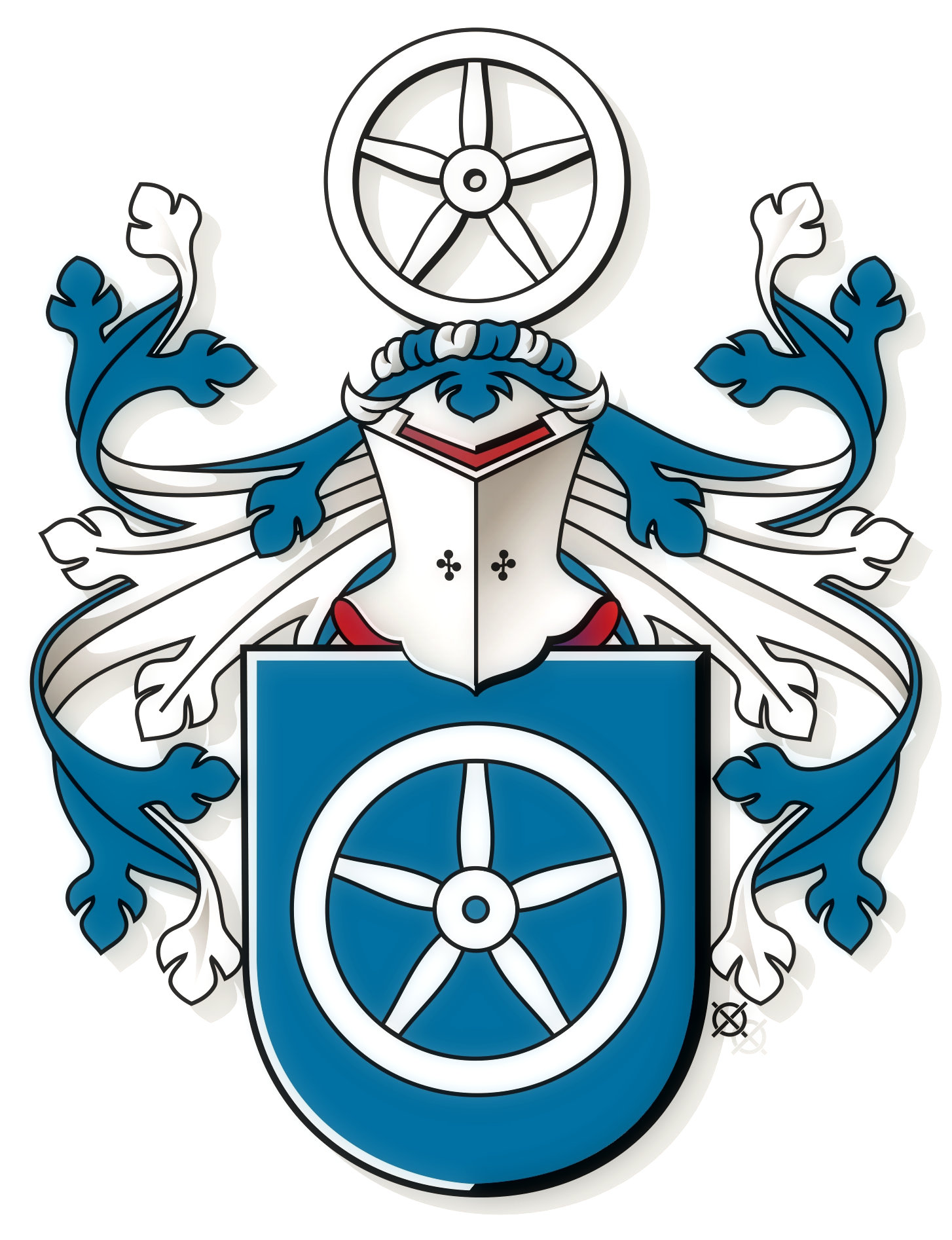 Several coats of arms/seals have been used within the Macrander family. The oldest seal found at the moment, belongs to Arnold Langemann (Macrander) and is from 1587. It shows a an armorial shield with a 5-spoke wagon wheel.