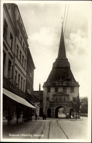![]() | The warning sign on the stone portal in Rostock Our ancestors had the agreeable custom of painting a clever motto such as a quotation or a Bible verse that they had adopted as a family motto on top of the doorways to their homes. Here, where they daily passed through on their way in and out, were the words to be clearly read as a constant reminder, something to think about and to keep in mind. After the same manner such quotations could be seen painted on public buildings such as churches, schools, city halls and portals, all places that saw heavy traffic, and very often further adorned with an important illustration that made the motto stand out even clearer and easier understandable. <---The Steinthor as seen in 1932