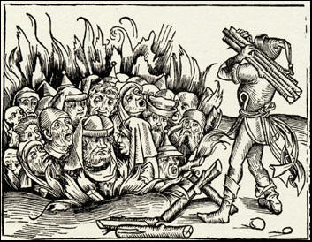 The knight Rindfleisch burns the Jews in Röttingen in 1298. (WeltChronik) |